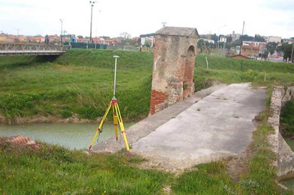 Centrino in acciaio inox infisso sul cordolo in cemento armato del vecchio ponte con tabernacolo posto sul torrente Tora sulla strada S.P. n°3 del Poggio.