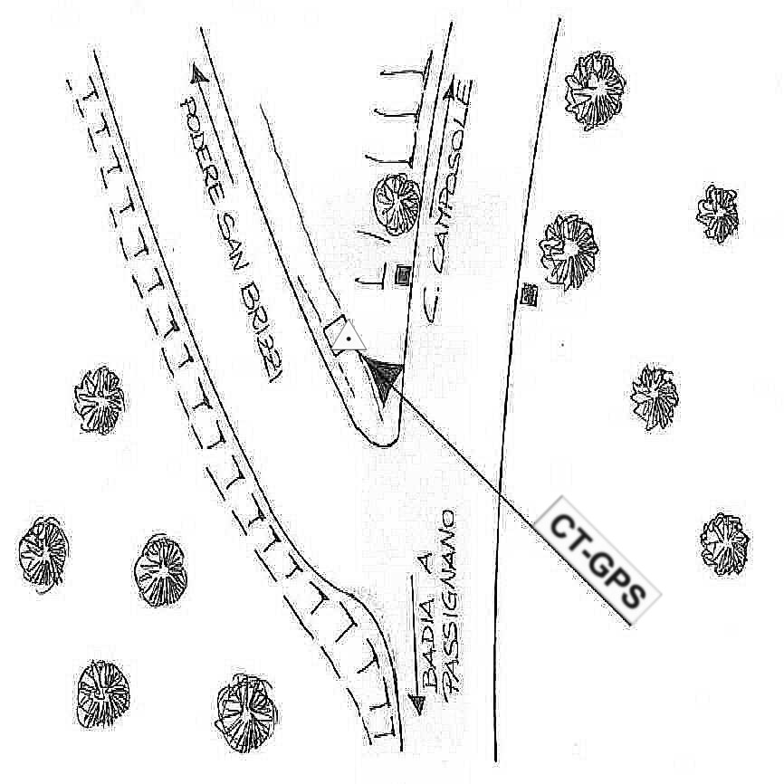 | Materializzazione | Centrino in acciaio inox infisso sullo spigolo del pozzetto in cemento, lungo la strada che porta al podere San Brizzi, presso l'ingresso alla proprietà C.Camposole nel comune di Greve in Chianti. |