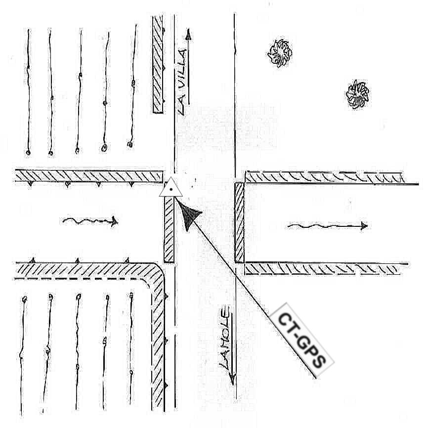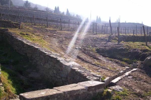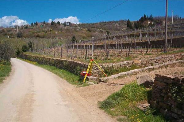 Centrino in acciaio inox murato sul parapetto del tombino che attraversa la strada che da Lamole porta a La Villa.