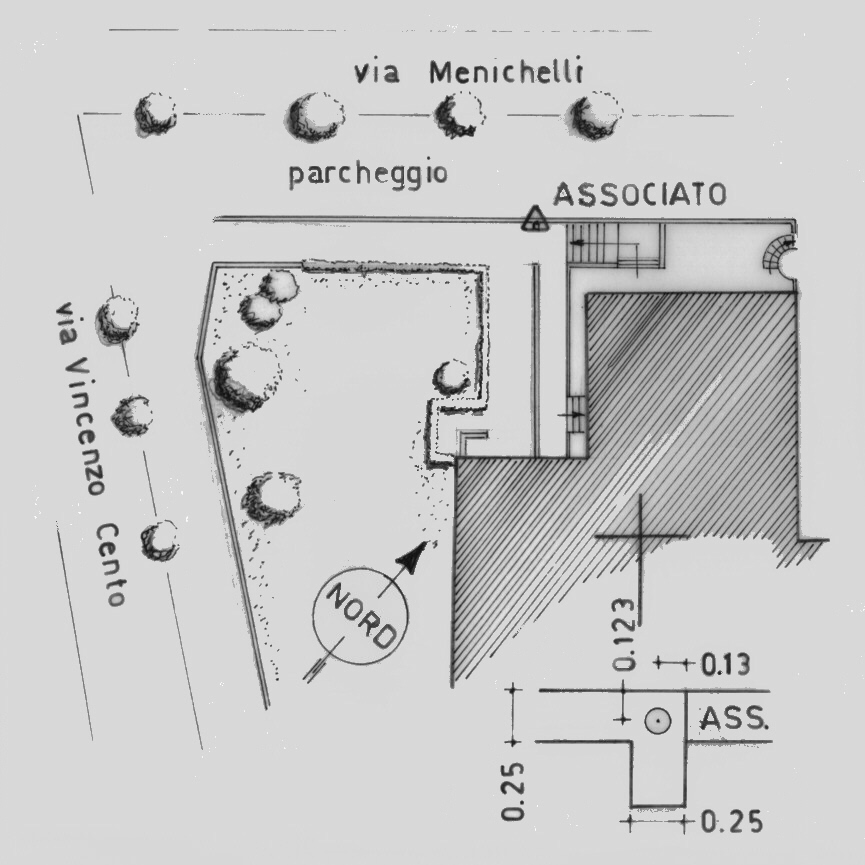 | materializzazione | Centrino del tipo "GPS D" fissato alla sommità del muretto perimetrale al vialetto di ingresso alla Chiesa. |