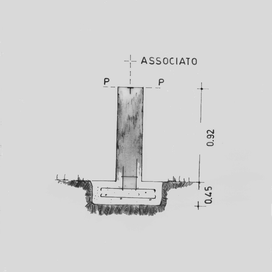 | materializzazione | Centrino metallico IGM del tipo di fuori centro cementato alla sommità, in corrispondenza dell'asse geometrico, di un pilastrino in muratura a sezione quadrata. |