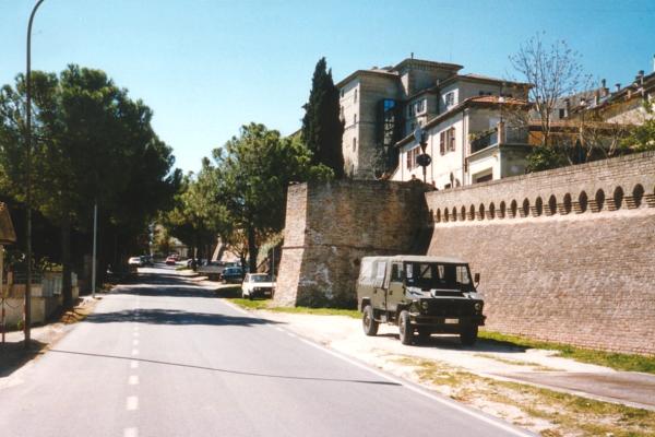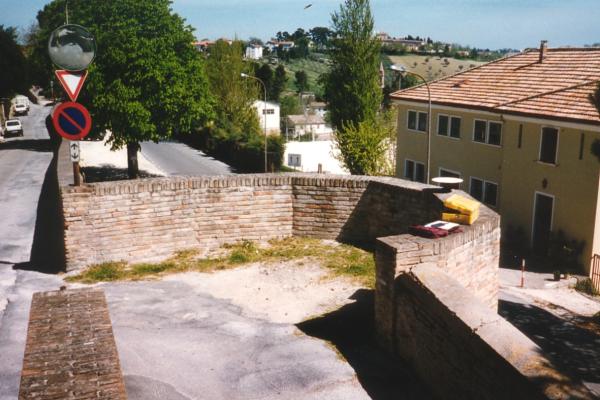 Centrino del tipo "GPS D" fissato alla sommità del parapetto della terza torre muraria contando dalla porta sud (da notare che la prima torre, a differenza delle altre, è ancora provvista di copertura).