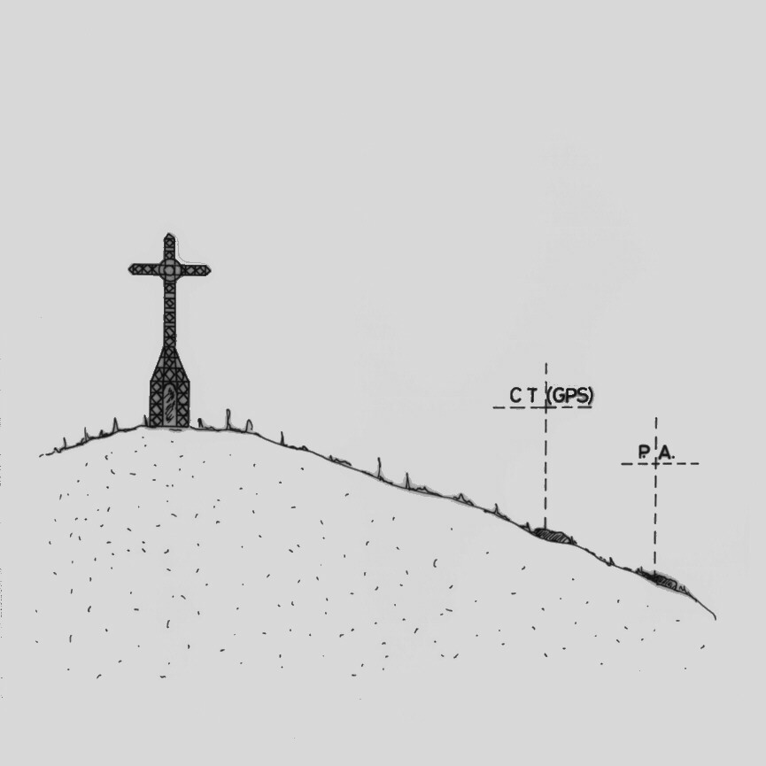 Centrino del tipo "GPS C" fissato su roccia affiorante situata a sud – est della croce monumentale.