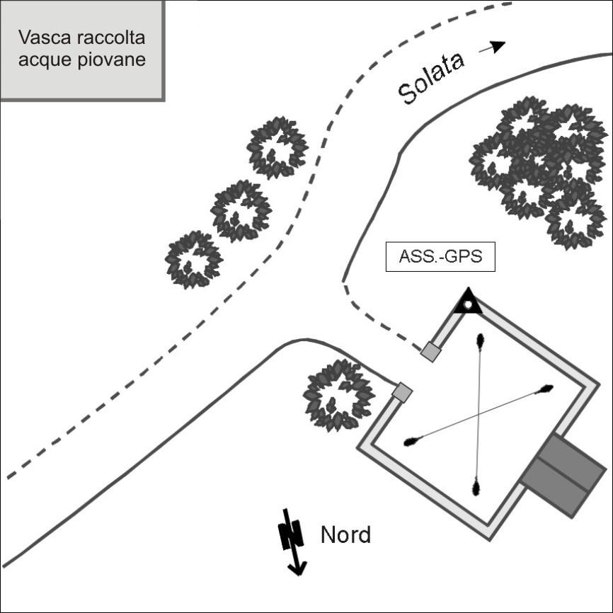 | Materializzazione | Centrino del tipo "GPS D" infisso alla sommità del muro di recinzione del cimitero in corrispondenza dello spigolo a sud (sinistro per chi guarda la facciata dell'ingresso). |