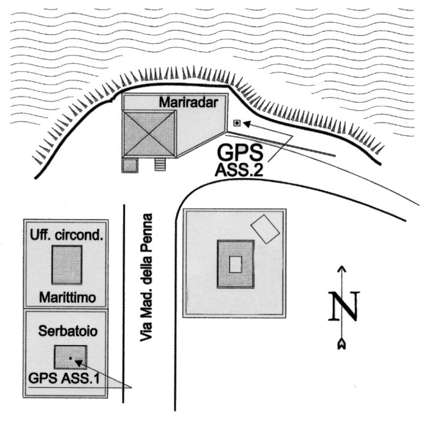 | materializzazione | Centrino di tipo "GPS B" fissato coassialmente sul preesistente centrino IGM del tipo di fuori centro posto sulla sommità di un pilastrino in cemento a pianta rettangolare. |