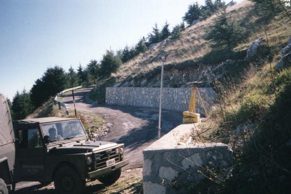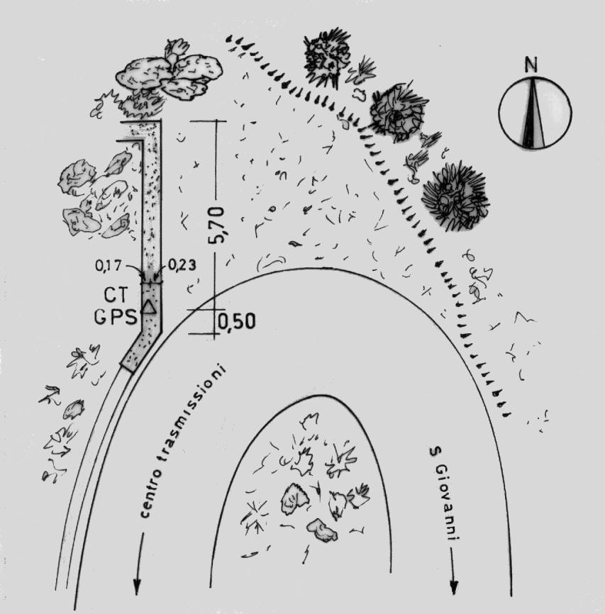 Centrino del tipo "GPS C" infisso nella sommità del muro di sostegno in calcestruzzo lungo il lato esterno del quinto tornante a scendere dalla sommità del monte.