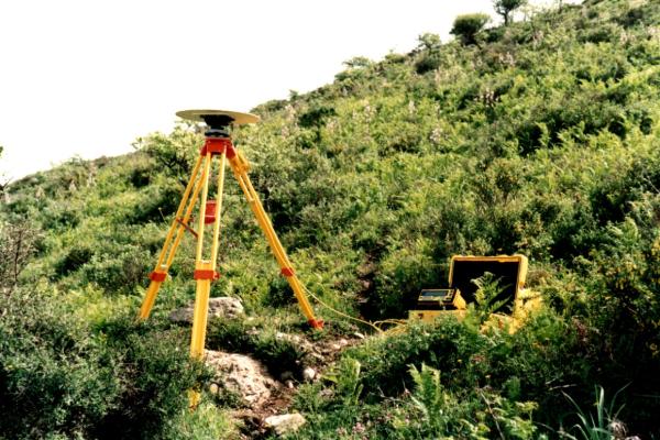 Centrino di tipo "GPS C" fissato su roccia affiorante nelle pendici del Pizzo Pinto.