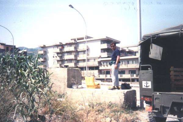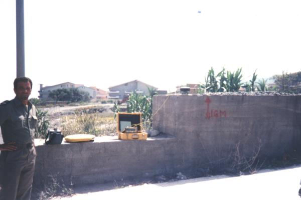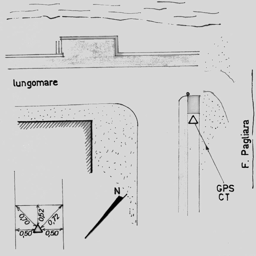 Centrino di tipo "GPS C" fissato sul muro a retta che delimita il Fiume Pagliara.