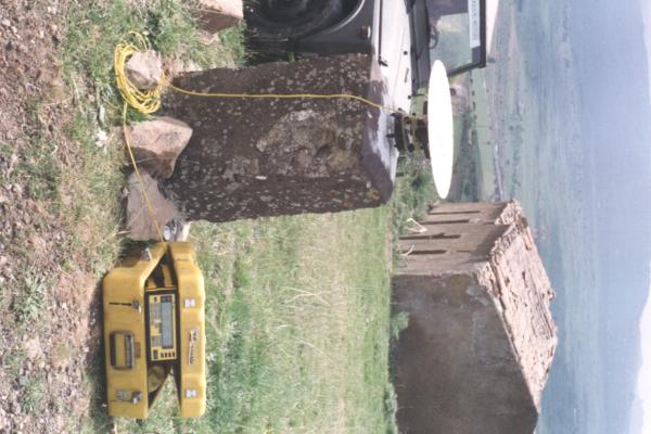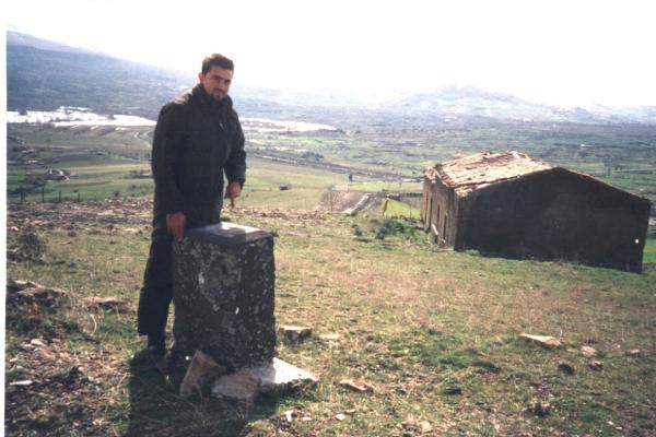 Centrino di tipo "GPS C" fissato in asse al pilastrino in muratura appena a nord di una casa diruta.