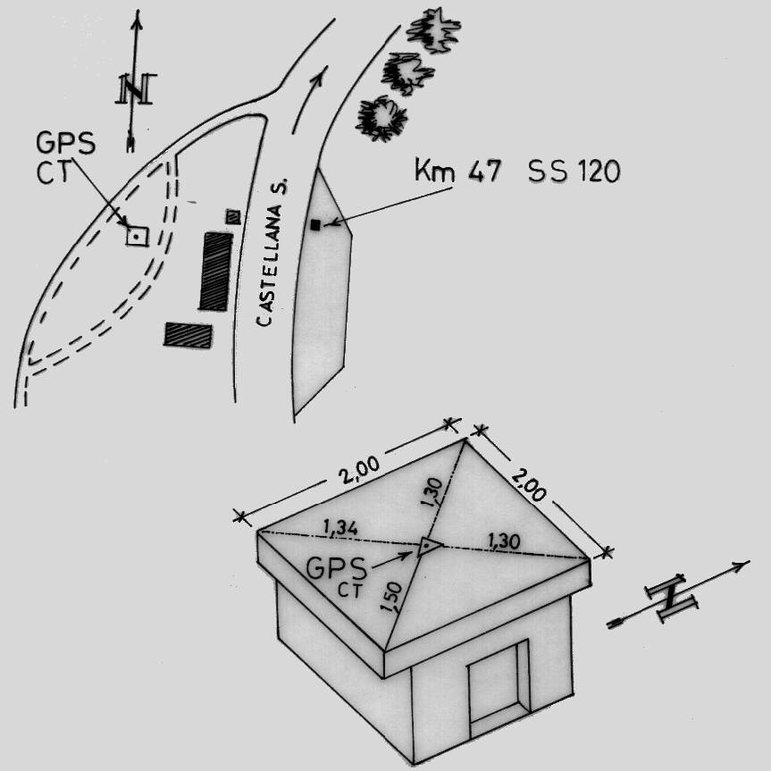 | materializzazione | Centrino di tipo "GPS C" fissato alla sommità di un pozzo in cemento armato sito dietro la casa cantoniera al Km 46,980 della S.S. 120. |