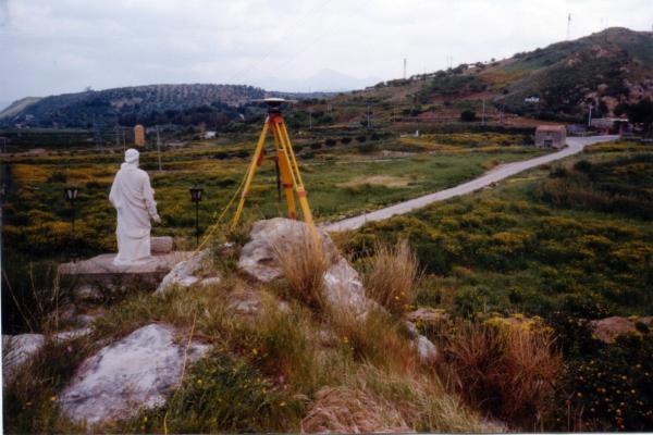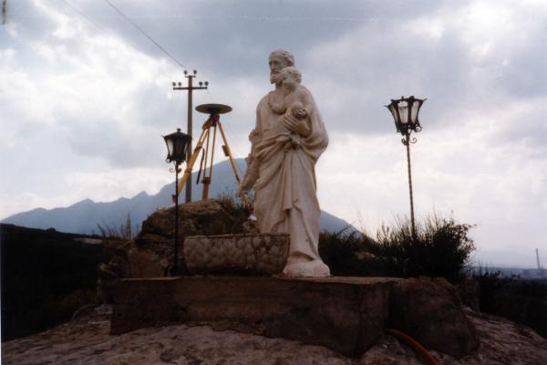 Centrino di tipo "GPS C" fissato alla sommità del blocco roccioso in posizione sovrastante la statua di S. Giuseppe.