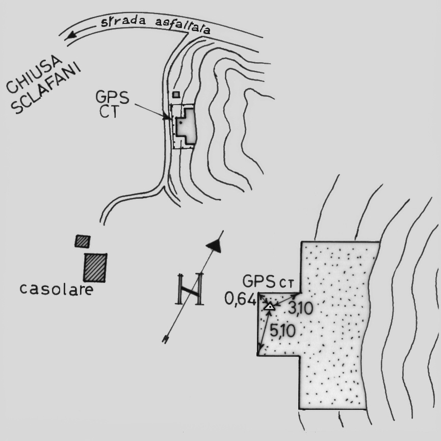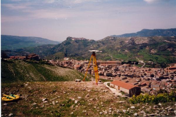 Centrino di tipo "GPS C" fissato sulla soletta in cemento armato di copertura di un serbatoio dell'acquedotto posto in località Rozzolone sopra il paese di Chiusa Sclafàni.