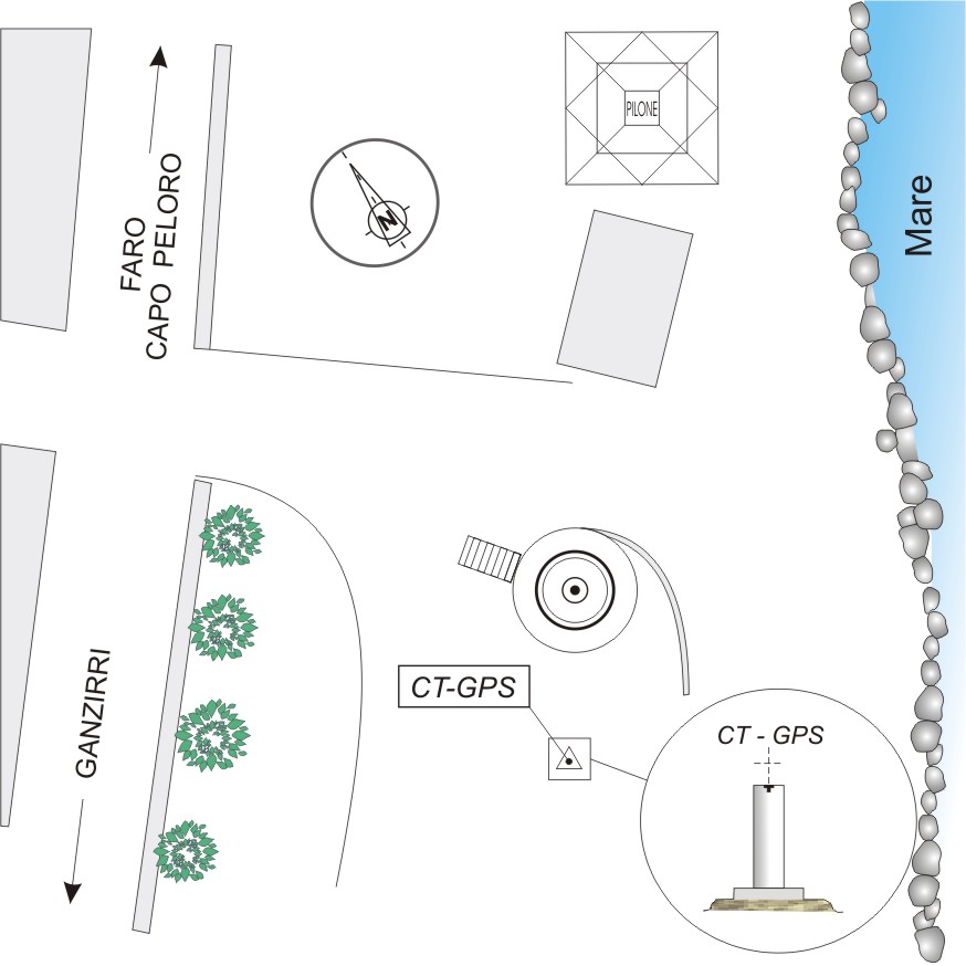 | materializzazione | Centrino di tipo "GPS C" fissato alla sommità di un pilastrino in calcestruzzo eretto al limite dell'arenile circa 10 metri a sud – ovest dal casotto, che costituisce la materializzazione del vertice n°7 del poligono per il "Controllo Geodetico dello Stretto di Messina". |