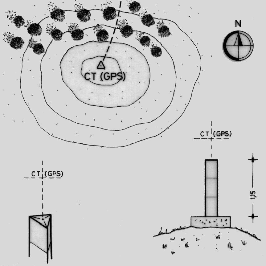 | materializzazione | Centrino di tipo "GPS A" fissato alla sommità del preesistente pilastrino metallico a sezione triangolare e coincidente con l'asse geometrico dello stesso. |