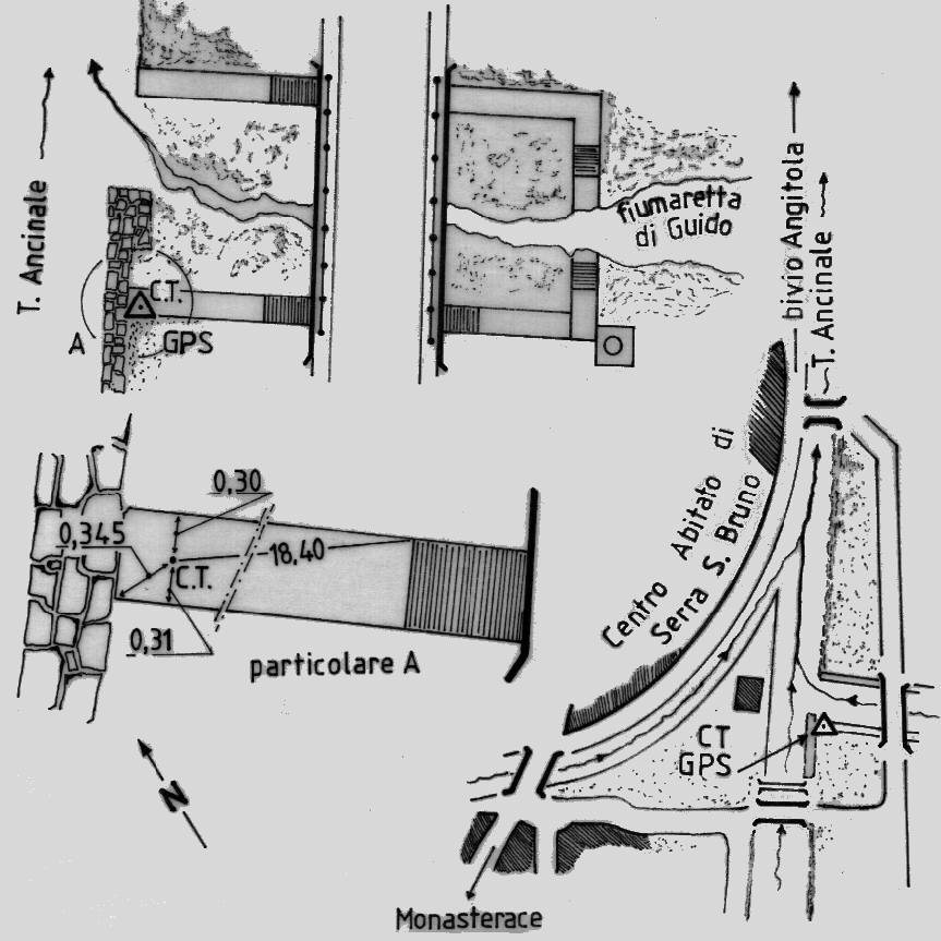 Centrino di tipo "GPS C" fissato alla sommità di un muro in cemento armato, che delimita l'argine sinistro della fiumaretta di Guido, alla confluenza con il torrente Ancinale posto nella periferia sud (di recente urbanizzazione) in zona Pippi del paese di Serra S. Bruno.
