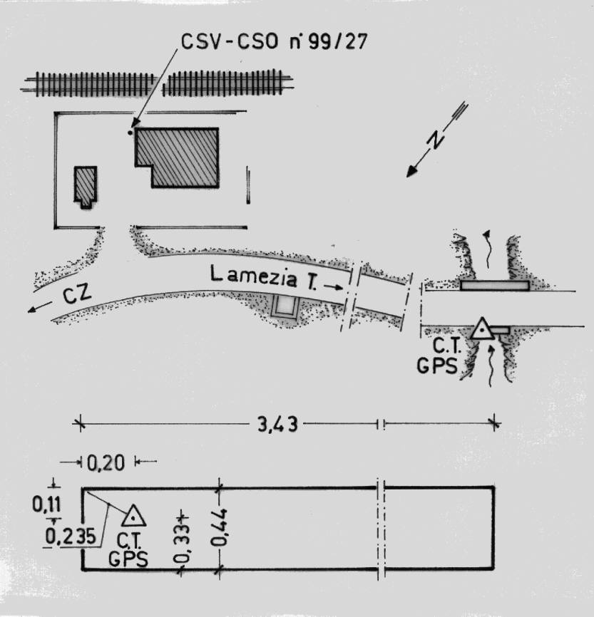 | materializzazione | Centrino di tipo "GPS C" fissato alla sommità della spalletta a monte del ponticello sul fosso, ad ovest del casello ferroviario n.23.937 Km 8,500 (attualmente in disuso) sulla S.S. 19 d. |