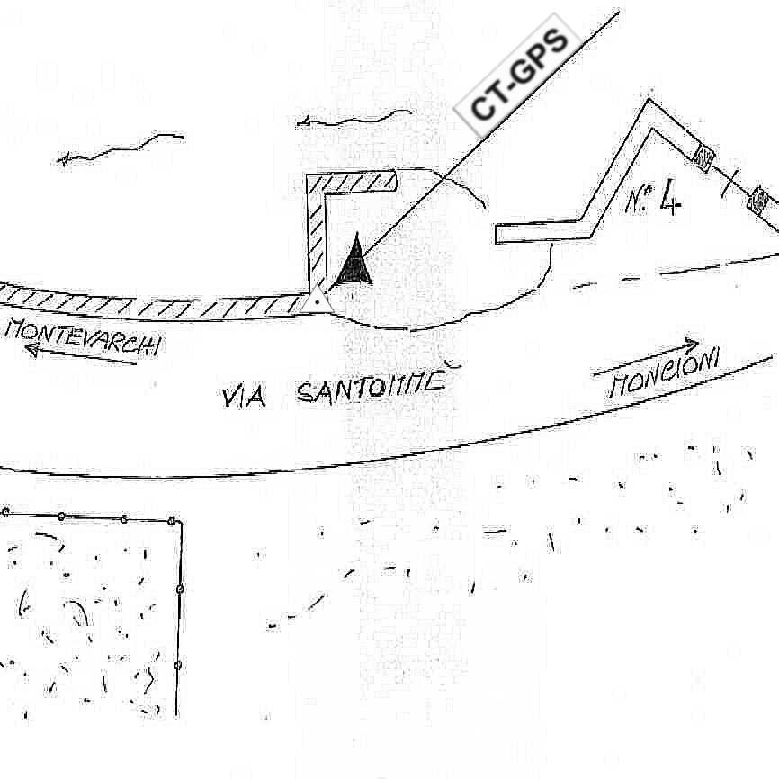 | Materializzazione | Centrino in acciaio inox infisso sul muro di contenimento della strada per Moncioni, via Santommè n° 4 a Montevarchi. |