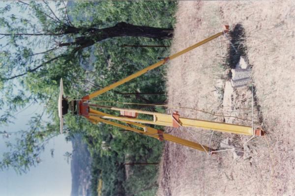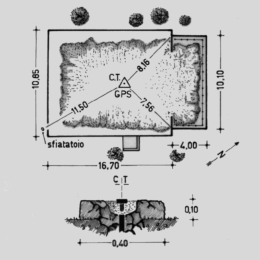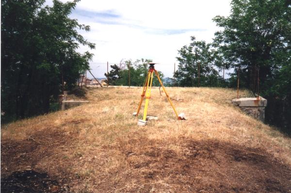 Centrino di tipo "GPS C" fissato coassialmente al gambo del preesistente centrino di superficiealla sommità del blocchetto in pietra e cemento, posto sul manto di copertura in terra del serbatoio dell'acquedotto di Castelsilano.