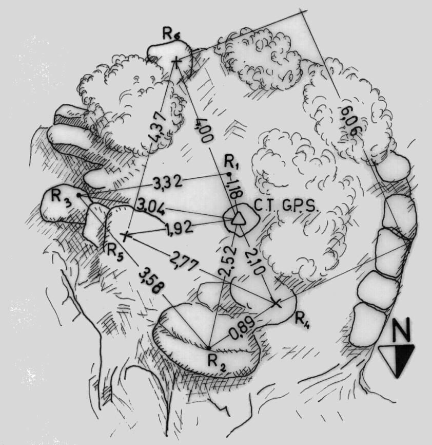 | materializzazione | Centrino di tipo "GPS A" incastrato in centrino IGM del tipo di superficie fissato su una sporgenza granitica alla sommità di Monte Nai. Riferimenti: R2, R3 centrini di metallici; R4, R5, R6 croci incise. |