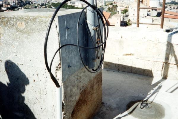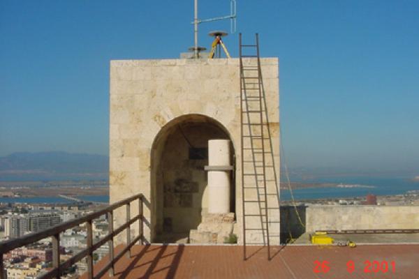 | materializzazione | Centrino di tipo "GPS A" infisso in un centrino IGM del tipo di superficie cementato sul pavimento sopra alla guardiola alla sommità della torre di San Pancrazio nel centro storico di Cagliari. Il centrino materializza l'asse della parte inferiore di un pilastro cilindrico in pietra sito all'interno della guardiola che costituisce il vertice di I ordine 234008. |