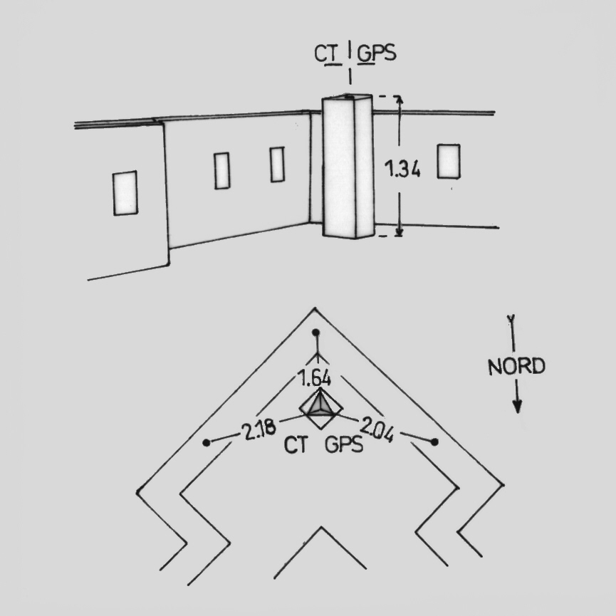 | materializzazione | Centrino di tipo "GPS C" infisso in corrispondenza del centro geometrico del pilastrino in muratura a pianta quadrata situato presso lo spigolo sud della terrazza della torre detta "del Cupo". |