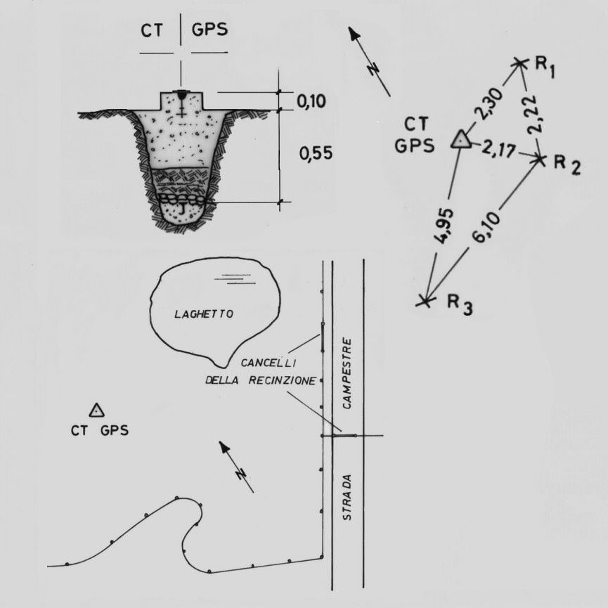 | materializzazione | Centrino di tipo "GPS A" fissato coassialmente al preesistente centrino IGM del tipo di superficie. Riferimenti: tre croci incise su roccia, come da monografia. |
