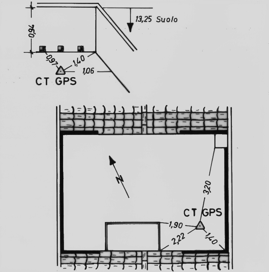 Centrino di tipo "GPS C" infisso sul terrazzino della casa, situata nella parte più alta del paese, presso lo spigolo sud-est.