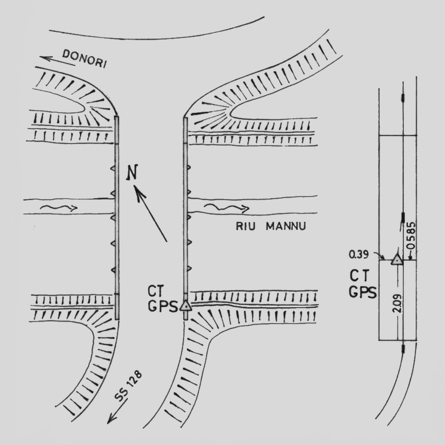 Centrino di tipo "GPS C" infisso sulla spalla destra in cemento armato, della riva destra, venendo dalla S.S.128, del ponte sul Riu Mannu.