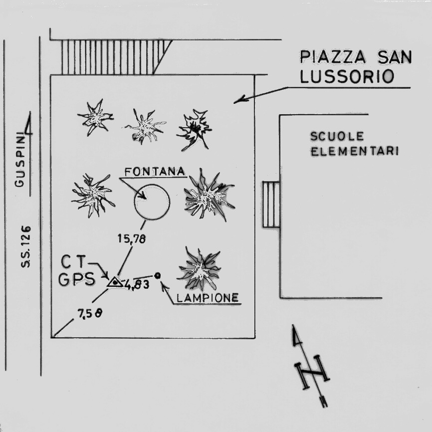 Centrino di tipo "GPS C" fissato in prossimità dello spigolo sud – ovest della piazza San Lussorio ubicata nel centro del paese di Arbus.