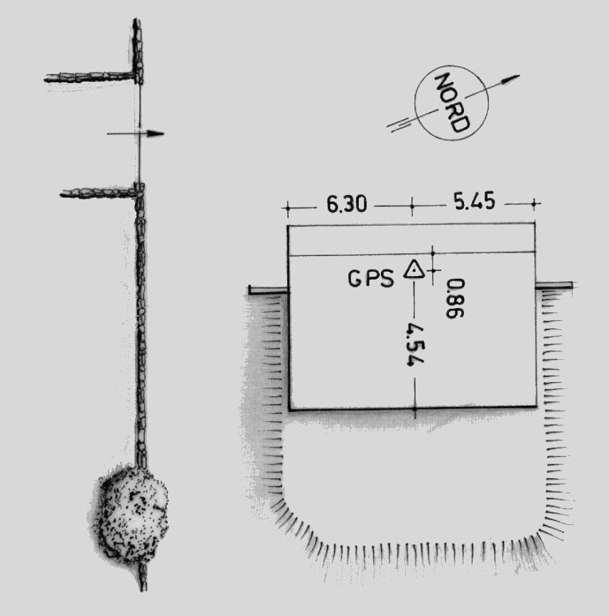 Centrino del tipo "GPS C" fissato sulla soletta di copertura del nuovo serbatoio idrico comunale posto in località Pranu Faas, sul poggio a est dell'abitato di Nurallao.