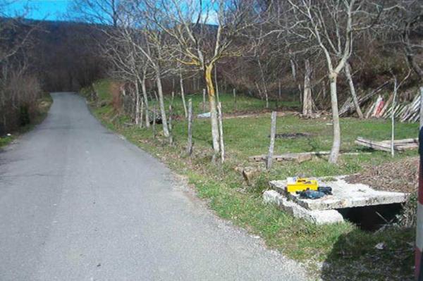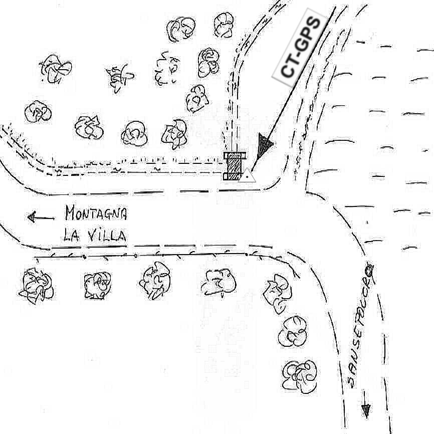 | Materializzazione | Centrino in acciaio inox murato sul manufatto in cemento del fossetto posto sulla penultima curva prima di entrare nella frazione Montagna la Villa, nel comune di Sansepolcro. |