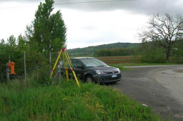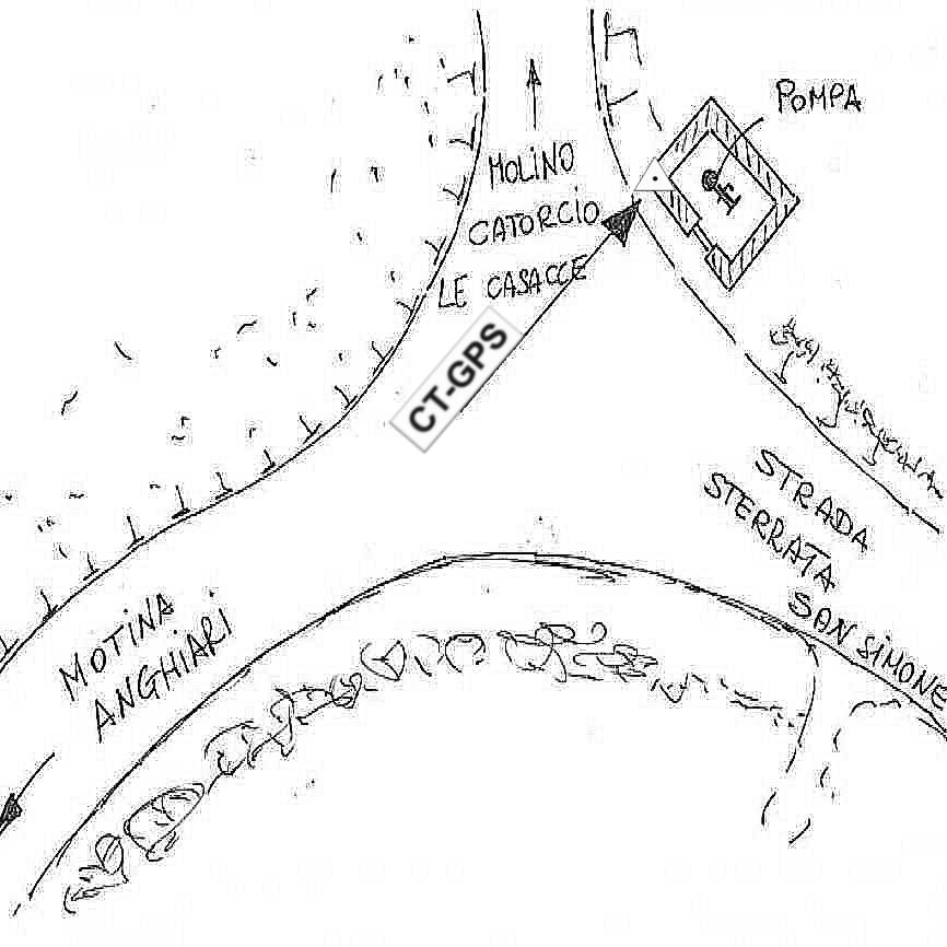 Centrino in acciaio inox murato sulla sommità del muretto – cordolo della recinzione di una stazione pozzo di pompaggio, posto lungo la strada che dalla S.P. 17 di Caprese Michelangelo porta a Molino Catorcio, nel comune di Anghiari.
