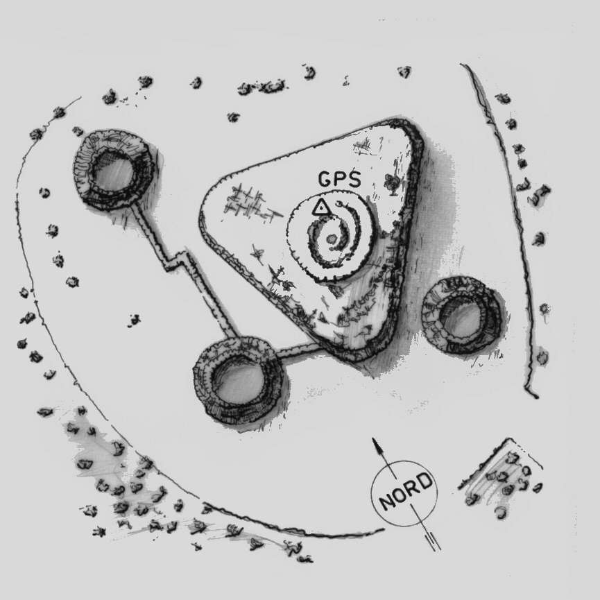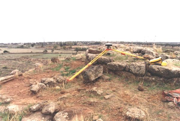 Centrino del tipo "GPS C" fissato in corrispondenza della sede (alloggiamento del centrino di fondo) del preesistente vertice trigonometrico posto su di un masso al lato nord – est della sommità del nuraghe. Riferimenti quattro croci incise: R1 = 3,64 m; R2 = 9,38 m; R3 = 2,75 m; R4 = 4,12 m.