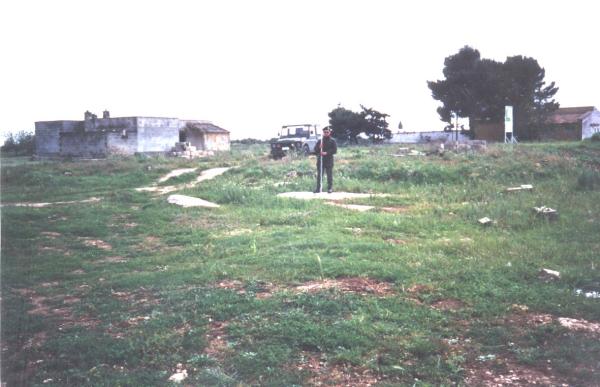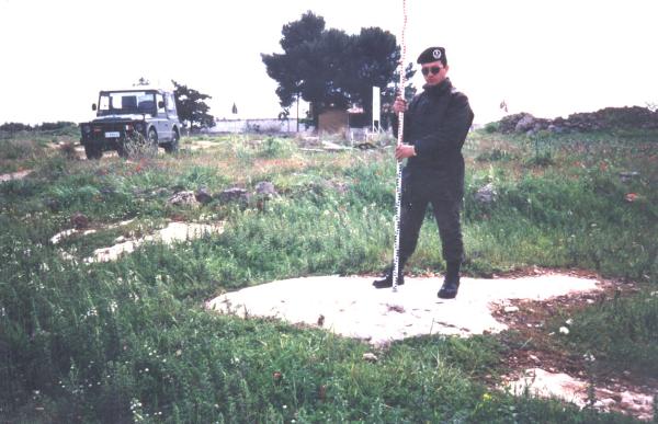 Centrino di tipo "GPS C" infisso su un lastrone piatto di roccia affiorante sito a nord – ovest di una masseria diruta.