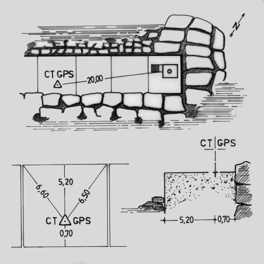 | materializzazione | Centrino di tipo "GPS C" fissato alla sommità del molo sopraflutto (in calcestruzzo armato e pietre) a 20 metri di distanza dal faro all'ingresso del porto di Formia. |