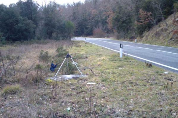 | materializzazione | Centrino in acciaio inox murato su roccia affiorante a destra della strada statale n° 329 al Km 13 + 950 nel comune di Monteverdi Marittimo. |