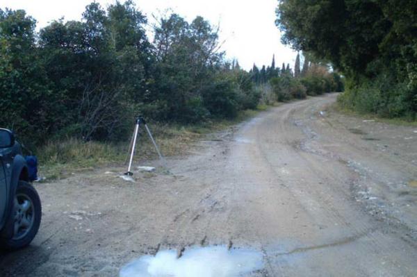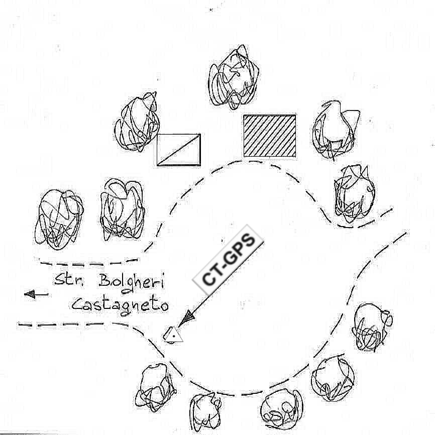 | Materializzazione | Centrino in acciaio inox murato su roccia affiorante posta sul bordo della strada sterrata in località " Guado al Melo " nel comune di Monteverdi Marittimo. |