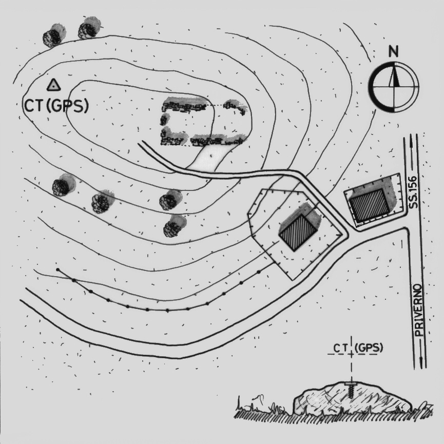 | materializzazione | Centrino del tipo "GPS C" fissato su roccia affiorante nei pressi dei ruderi della chiesa sita sul Colle S. Pietro. |
