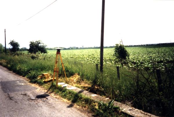 Centrino in acciaio inox del tipo "GPS da livellazione" infisso nell'estremità ad est del cordolo sud del ponticello esistente poco dopo l'imbocco della strada che inizia dal km 57,650 della S.S.7 "Appia".