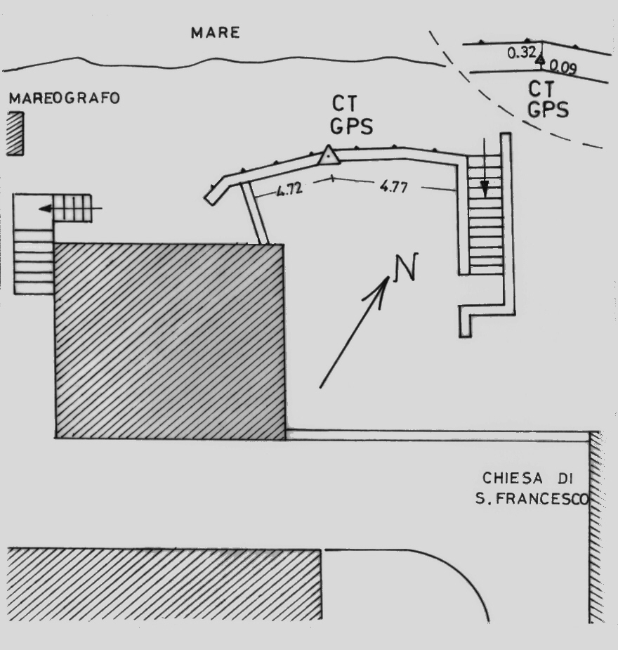 | materializzazione | Centrino di tipo "GPS C" infisso sul muro a retta in cemento armato nei pressi del mareografo, di fronte alla Chiesa di S. Francesco. |