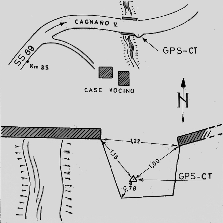 | materializzazione | Centrino di tipo "GPS C" fissato su blocco di cemento adiacente alla spalla sud del ponticello al Km 35+I della SS. 89. |