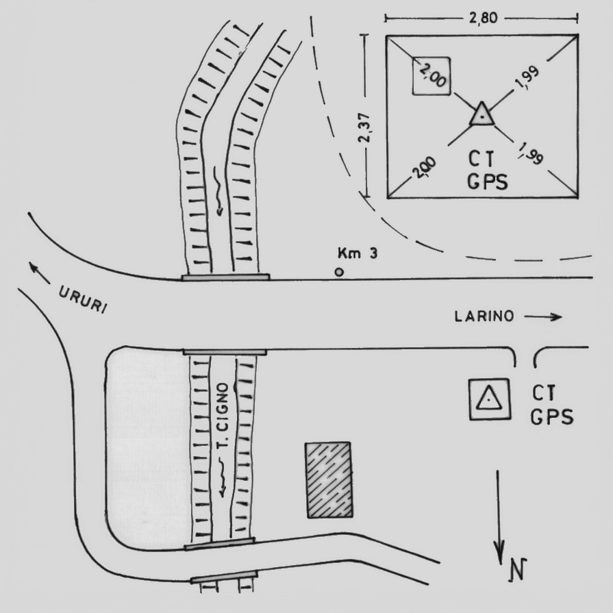 | materializzazione | Centrino del tipo "GPS C" fissato al centro della soletta in cemento armato della camera di ispezione dell'acquedotto al Km 3,100 della S.S.480. |