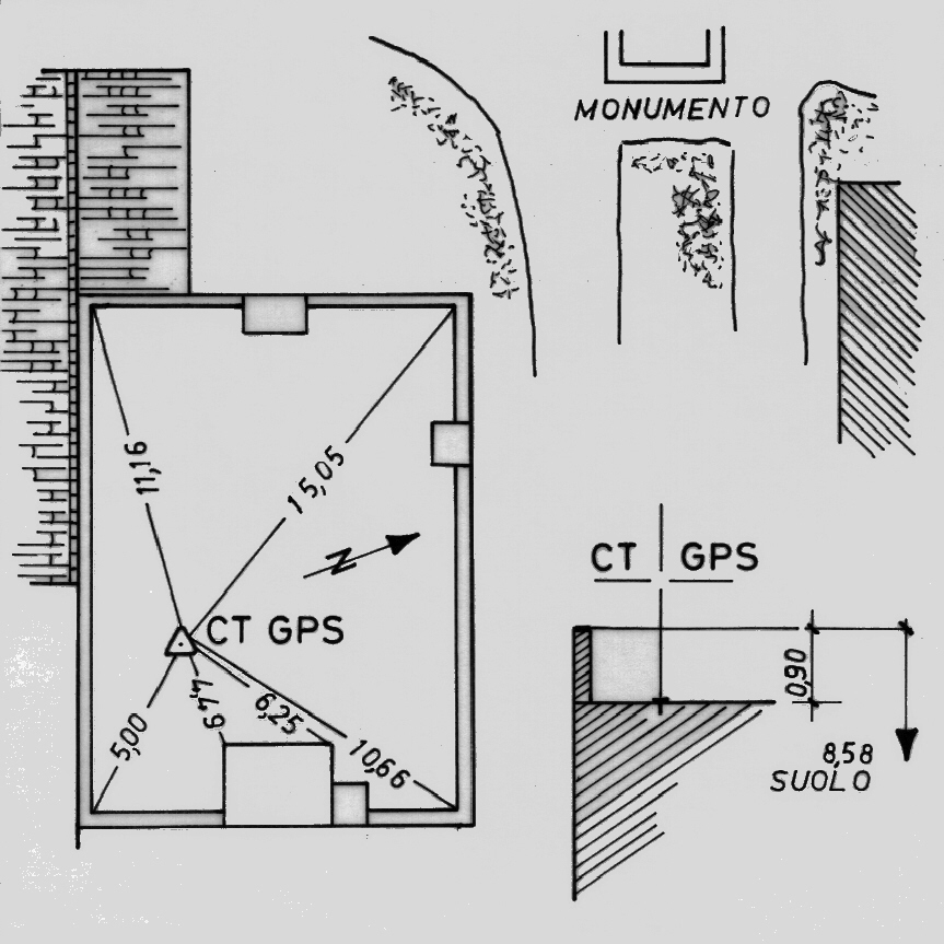 | materializzazione | Centrino di tipo "GPS C" fissato sulla terrazza del fabbricato rurale, a destra del monumento entrando nella masseria, presso lo spigolo sud. |