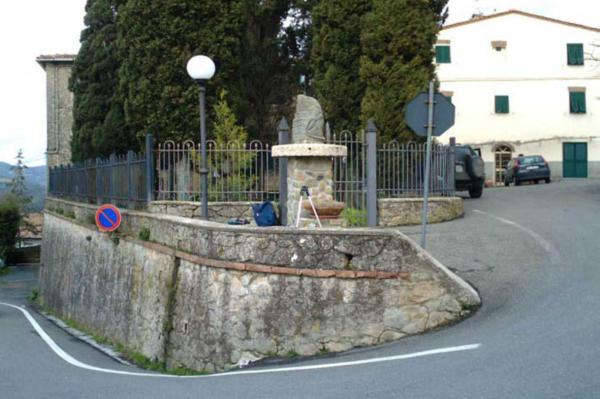 | materializzazione | Centrino in acciaio inox murato sul basamento del monumento nel paese di Lustignano, comune di Pomarance, posto sulla sinistra entrando in paese. |