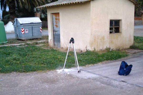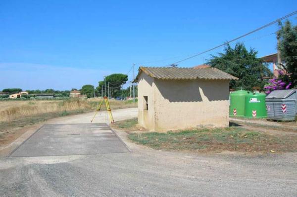 Centrino in acciaio inox murato sullo spigolo Nord della pesa pubblica in località " Osteria Vecchia ", comune di Castagneto Carducci.