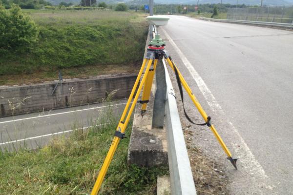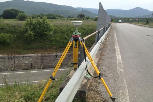 Centrino metallico orizzontale di tipo chiodo con rondella ARPAB Regione Basilicata infisso sulla sommità del cavalcavia stradale.