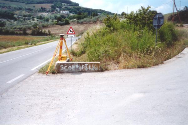 | materializzazione | Bulloncino in acciaio inox da livellazione del tipo GPS infisso nella sommità ed in corrispondenza dell'angolo formato dal basso muretto che delimita il pozzetto di una chiavica; il pozzetto è ubicato sulla parte sinistra dell'imbocco della strada per la località "il Calvario". |