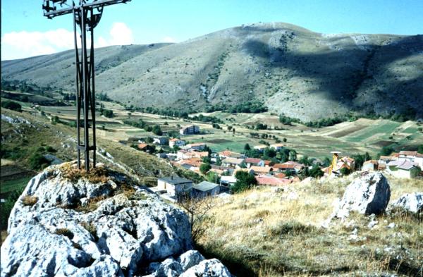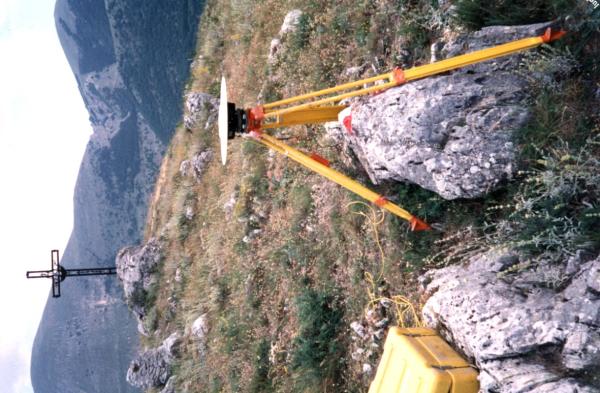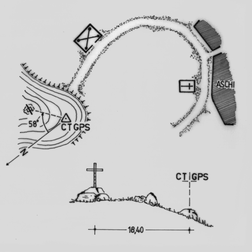 Centrino di tipo "GPS C" fissato alla sommità di una roccia affiorante dal terreno situata su un poggetto che sovrasta a nord il cimitero del paese di Aschi, nei pressi di una croce in ferro.