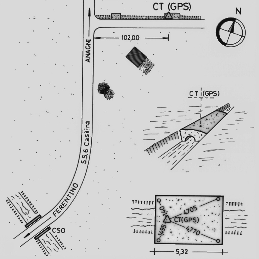 | materializzazione | Centrino del tipo "GPS C" fissato alla sommità della soletta in cemento armato del ponticello sito in località S. Antonio, all'altezza del km 69,800 della S.S.6 Casilina. |