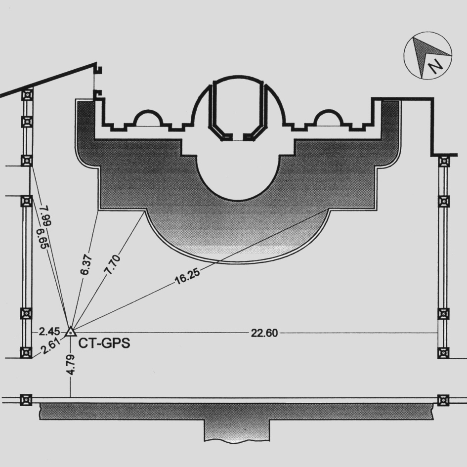 | materializzazione | Centrino del tipo "GPS C" fissato nel pavimento della terrazza superiore del complesso denominato "Fontana dell'Organo". |